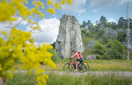 Felsen und Magerrasen, Karstphänomene, zahlreiche Höhlen und Steinbrüche prägen die Landschaft im Naturpark Altmühltal. Der Ursprung all dieser Besonderheiten liegt im Untergrund: die kalkigen Gesteinsschichten des Weißjura.