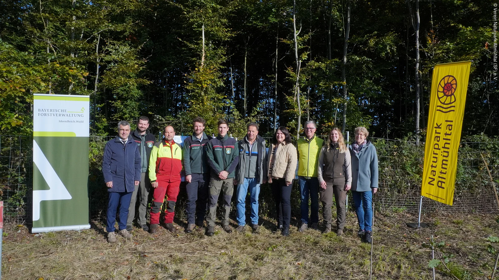 Reisberg / Lippertshofen - 14.10.2025: Gemeinsam stellten der Naturpark Altmühltal (Südliche Frankenalb) e.V., das Amt für Ernährung, Landwirtschaft und Forsten (AELF) Ingolstadt-Pfaffenhofen und das Bayerische Amt für Waldgenetik (AWG) das Projekt „Waldzukunft Naturpark Altmühltal“ sowie eine neu angelegte Versuchsfläche vor.