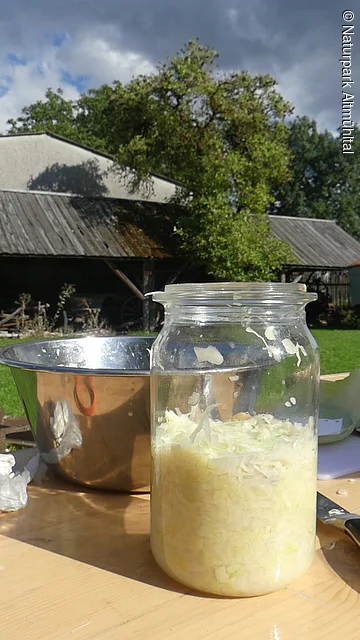 Auf einem Hof helfen alle mit, jeder soviel er kann, auch die Kinder! Vieles war früher einfach nur mühsam, aber manches macht auch richtig Spaß. Kraut einstampfen zum Beispiel. Habt Ihr noch nie gemacht? Dann wird es aber Zeit! Bitte mit sauberen Füßen und zwei Einmach-/Marmeladengläsern kommen!